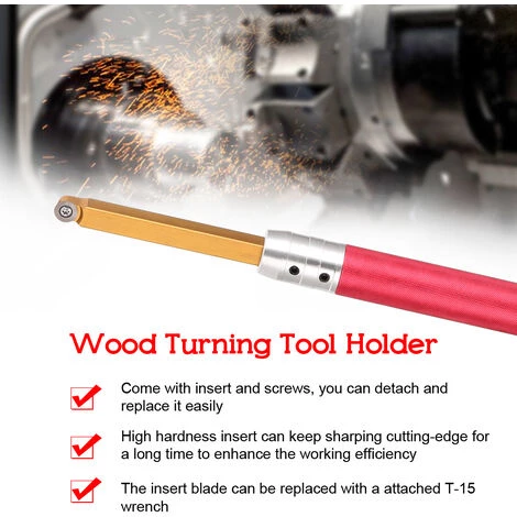 Dieses bearbeitete Drehwerkzeug mit Einsatz aus legiertem Stahl, die Stabilität und die Stoßwiderstandsfähigkeit zu erhöhen. Hohe Härte R6 Einsatz kann für eine lange Zeit sharping topaktuelle hält die Arbeitseffizienz zu verbessern. Kommen Sie mit Einsatz und Schrauben, können Sie lösen und leicht ersetzen. Geeignet für alle Könnensstufen Enthusiasten oder DIY Holzbearbeitung. Versuch es.