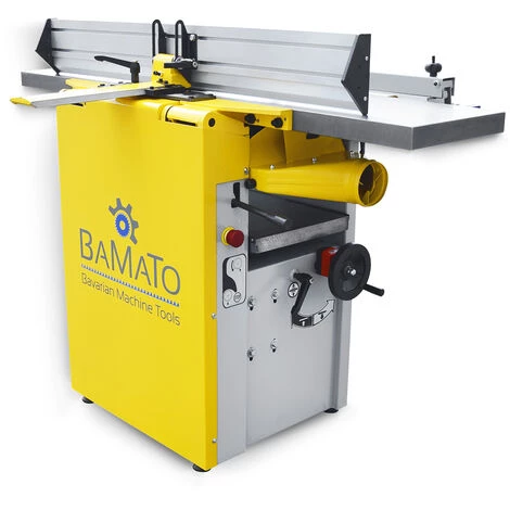 Die BAMATO Abricht- und Dickenhobelmaschine BHM-310 für den fortgeschrittenen Anwender ist mit einer präzisionsgelagerten Messerwelle ausgestattet, welche mit 3 Stück HSS-Hobelmesser bestückt ist. Dank der kompakten und stabilen Bauweise ist die Hobelmaschine perfekt geeignet zum Hobeln von Leisten, Kanthölzern und Brettern. In Sachen Bedienkomfort punktet die BHM-310 durch nach hinten aufklappbare Abrichttische für eine platzsparende Aufstellung sowie ein Handrad mit Anzeige für exakte Dickentischeinstellung. Der stabile und verwindungsfreie Abrichttisch aus Grauguss sorgt für ein perfektes Hobelergebnis beim Abrichten. Die Hobelbreite bis zu 310mm und der Dickendurchlass von 240mm machen diese Hobelmaschine zu einem wertvollen Helfer für den ambitionierten Heimwerker.