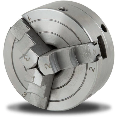 Durch die drei selbstzentrierenden Haltestifte und einem Durchmesser von 50 mm ist das Backenfutter perfekt für die Bearbeitung kleinerer Werkstücke geeignet.