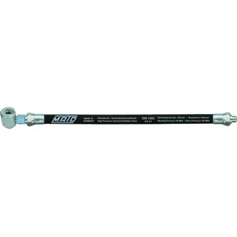 Hochdruckschlauchleitungen mit SchiebekupplungHochdruck-Schlauchleitung mit Schiebekupplung M 4 für Flach-Schmiernippel 10 mm • Vorteil: Sicherheits-Hochdruck-Gummipanzerschlauch mit 13 mm Durchmesser – hohe Arbeitssicherheit durch Berstdruck bei 1650 bar