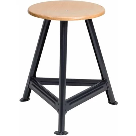 Sitzschemel 3-beinig • Ausführung: formgepresstes Bandstahlgestell mit StahlgleiternBuche-Holzrundsitz. Durchmesser 350 mm in naturfarbener Lackierung