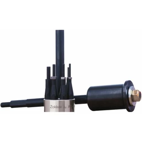 Stiftzieher-Set Zokker • Anwendung: Müheloses Ziehen aller Zylinder- und Kegelstifte. Keilleisten. Riemenscheiben und vielem mehr. • Ausführung: handliche kompakte SatzzusammenstellungBits und Zugstangen auf 1000 Nm/mm² vergütet. brüniert2 Zugstangen 120 und 200 mmTreiber 770 g6 Bits M3. 4. 5. 6. 8 und M10 im Magazinring • Vorteil: sehr hohe Zugfestigkeit durch gerollte Außengewinde und geformte Innengewinde