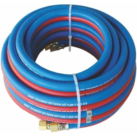 Zwillingsschlauch konfektioniert • Anwendung: Für Sauerstoff und Brenngas zur Verbindung von Flasche und Brenner. • Ausführung: Innendurchmesser Brenngas 9 mmInnendurchmesser Sauerstoff 6 mmAußendurchmesser jeweils 16 mmbeidseitig mit Anschlüssen konfektioniert und einsatzfertigG 1/4 SauerstoffG 3/8 links Acetylen • Vorteil: sehr flexibel. leicht zu Handhaben durch hohe Beweglichkeithohe Sicherheit durch flammwidrige (selbstverlöschende) Gummiqualität