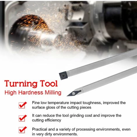 Dies ist ein Set aus hochwertigem Drehwerkzeug und Bohrstangenhalter-Set, perfekt für Vorschlicht- und Endbearbeitungen. Feine Zähigkeit und Härte, lange Lebensdauer. Feine Schlagzähigkeit bei niedriger Temperatur, verbesserte den Oberflächenglanz der Schneidstücke.