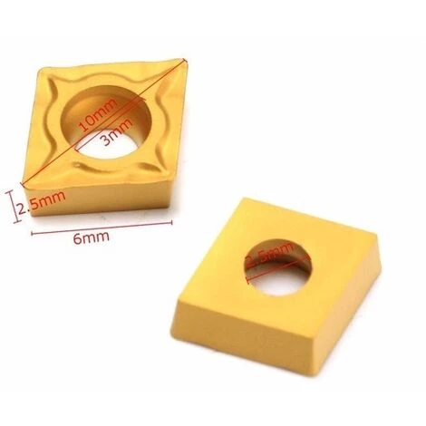 : 10 Stück CCMT060204-HM YBC251 Hartmetalleinsatz Titanbeschichteter Hartmetall-Schaftfräser Drehwerkzeug Drehmaschinen Messersicherheit Gute Zähigkeit und MTTiCN, dickes Al2O3, TiN-Beschichtung mit ausgezeichneter Kombination; Geeignet für Stahlhalbzeuge. Technische Daten: Modell: CCMT060204-HM YBC251Material: WolframcarbidFarbe: GoldGröße: 6x6mmDicke: 2,5mmAnwendungen: Geeignet für StahlhalbwareAnzahl: 10 Stück / Karton Merkmale: Die Klinge hat hochfeste, hohe Zähigkeit, Stabilität und Langlebigkeit. Materialien mit hoher Härte und Gusseisen . TiN-Oberfläche, gute Verschleißfestigkeit. Wird hauptsächlich für die allgemeine Bearbeitung von Stahl verwendet.