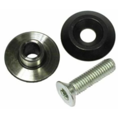Rändelfräser Ersatzteil Satz für Rändelfräswerkzeuge • Anwendung: Zum Einsatz auf Rändelfräsern. • Ausführung: Hartmetalllaufbuchse. Deckscheibe und Befestigungsschraube • Vorteil: Wartungsarmes Arbeiten mittels Hartmetalllaufbuchse