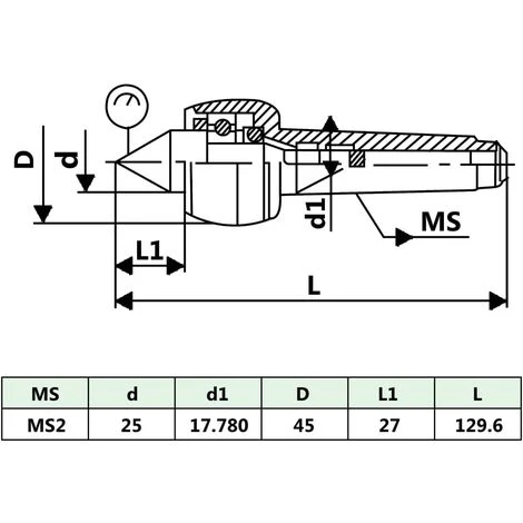 Die mitlaufende Körnerspitze MT2 ist aus hitzebeständigem Stahl von hoher Härte, hoher Präzision und Korrosionsbeständigkeit gefertigt. Interne Kugellager sorgen für einen ruhigen, konzentrischen Lauf Ihres Werkstücks. Der MT2-Kegel ist außerdem mit allen MT2-Drehmaschinenmodellen kompatibel.